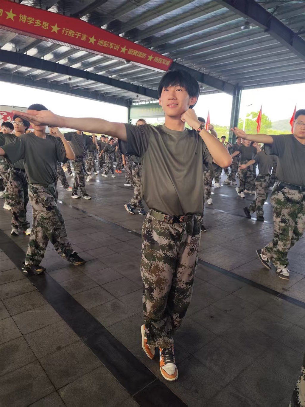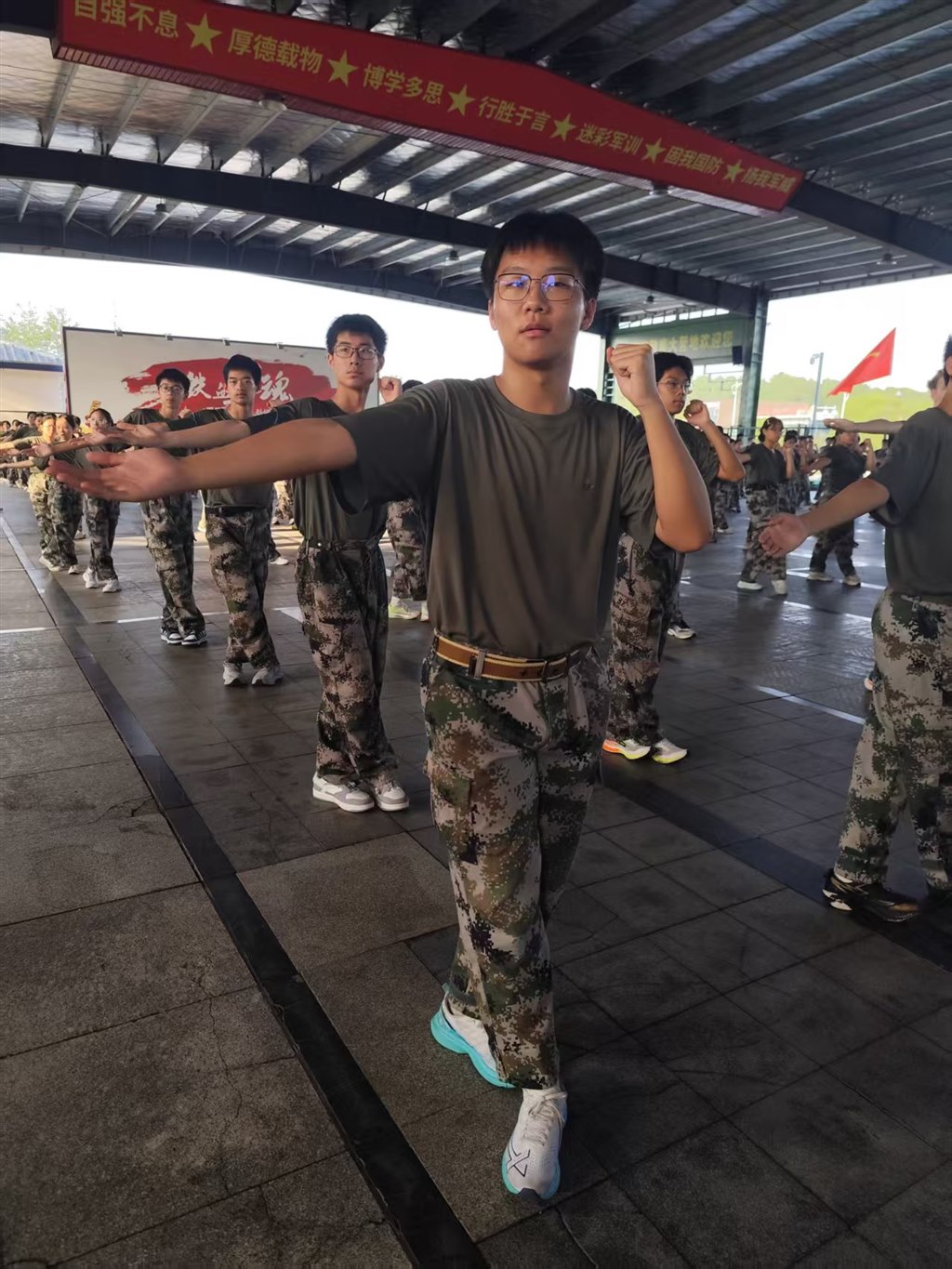 咬肌绷紧出拳!军训军体拳特写:少年的气场藏在表情里